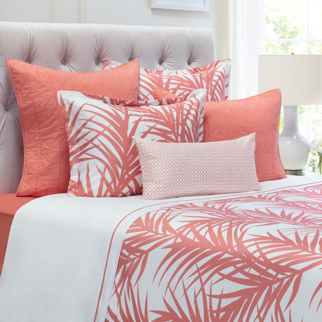 For a gorgeous layered bed, our Laguna Coral bedding pairs beautifully with our Coral Embroidered Sheets and the Coral Chevron Quilt.