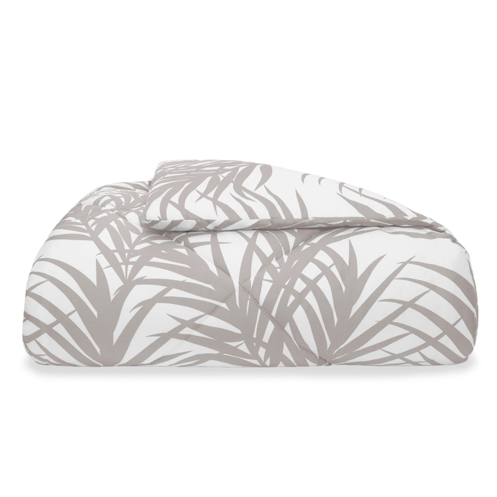 Color your cloud 9 with our patterned comforter. Our Dove Grey Laguna comforter, complete with a coastal-inspired palm leaf print, adds playful elegance to any space. It's also made from 100% long-staple cotton and woven in a luxurious 300-thread-count, so it looks chic and feels oh-so-soft. Our dove grey and white printed comforter pairs beautifully with our luxury sheets and chic throw pillows.