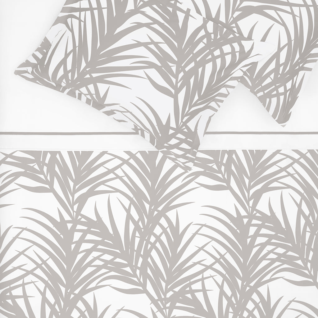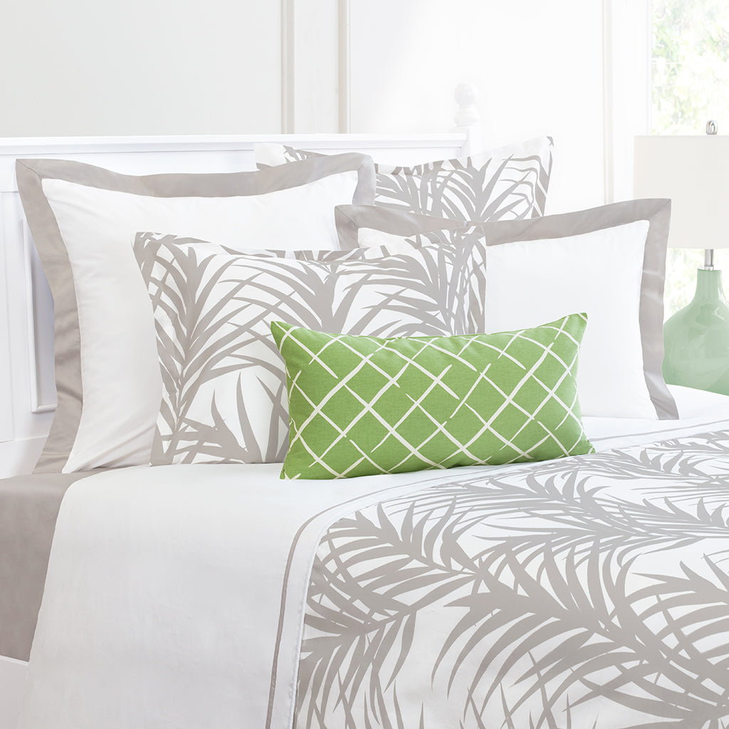 Indulge in the breezy ease of island living with our Laguna Dove Grey bedding. This palm-inspired print is as cool as the ocean breeze and will perfect your coastal bedroom.