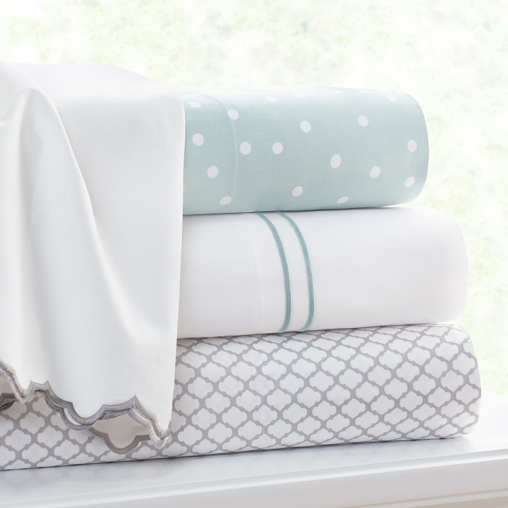 These porcelain green sheets in a timeless polka dot pattern are the perfect layering piece for your bed. Luxurious and super soft, our printed sheets are made from premium long-staple cotton woven in a silky 300 thread count.