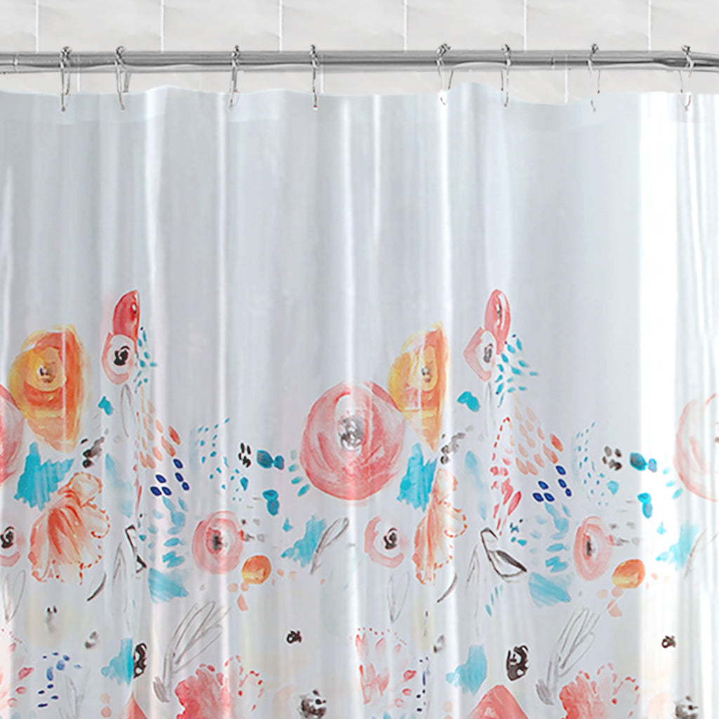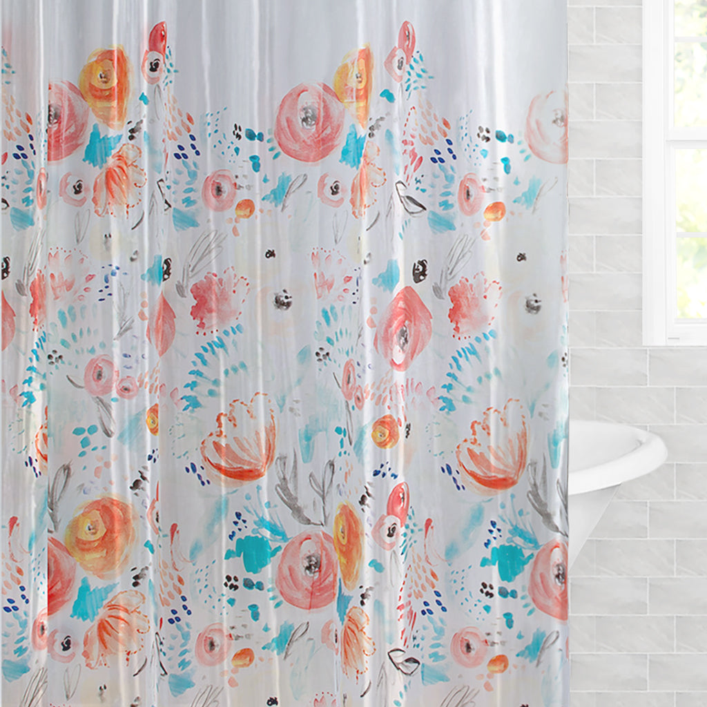 Make a beautiful statement in your bath with our PEVA shower curtains. With its watercolor Spring Blooms pattern on a frosted background, this colorful shower curtain will instantly add an elegant vibe to your bathroom.