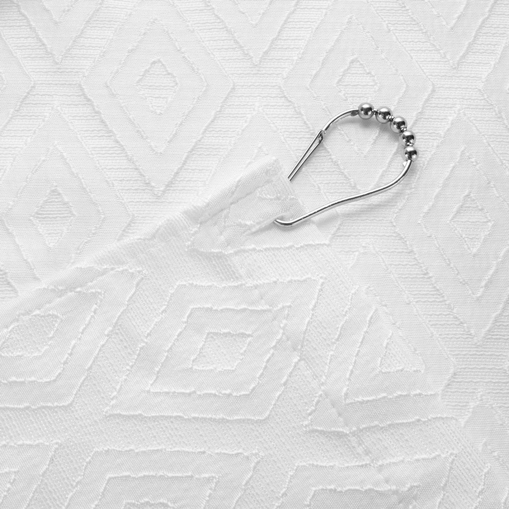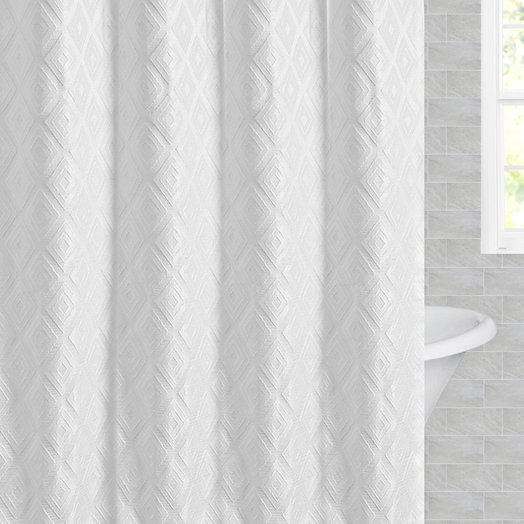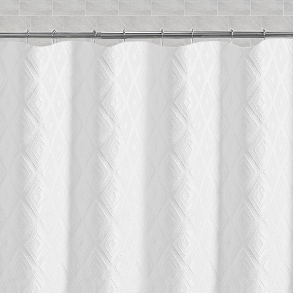 Transform your bath to a spa-like retreat with our versatile White Textured Diamond Shower Curtain. Woven in a beautiful jacquard weave, this subtle diamond textured shower curtain will instantly add elegant sophistication to your bathroom.