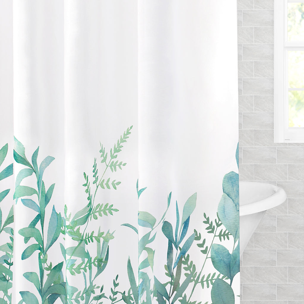 Make a bold statement in your bath with our patterned shower curtains. With its bold tropical leaves, this green and white shower curtain will instantly add a coastal vibe to your bathroom.