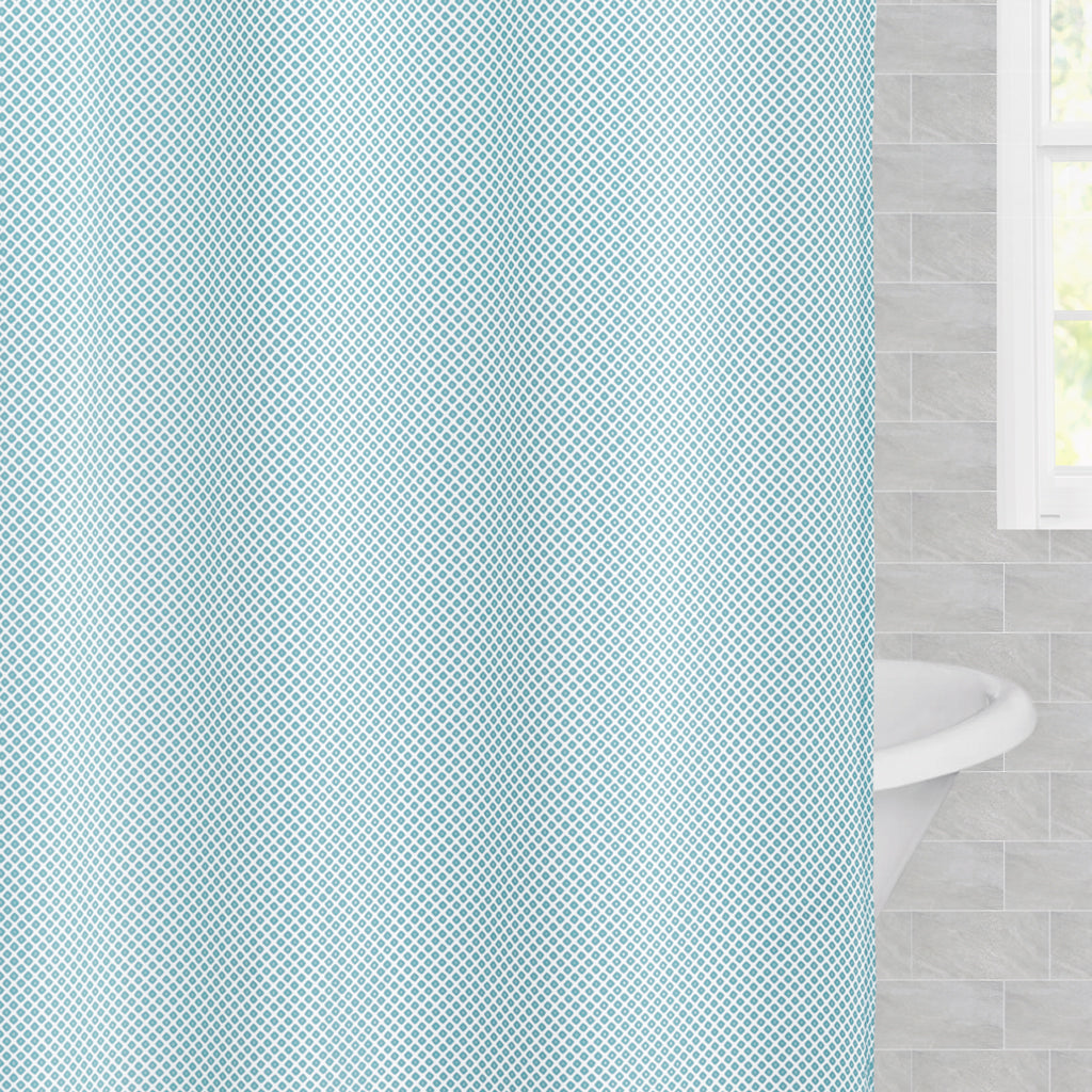 Make a beautiful statement in your bath with our printed shower curtains. With a playful diamonds print, this turquoise and white printed shower curtain will turn your bath into an elegant retreat.