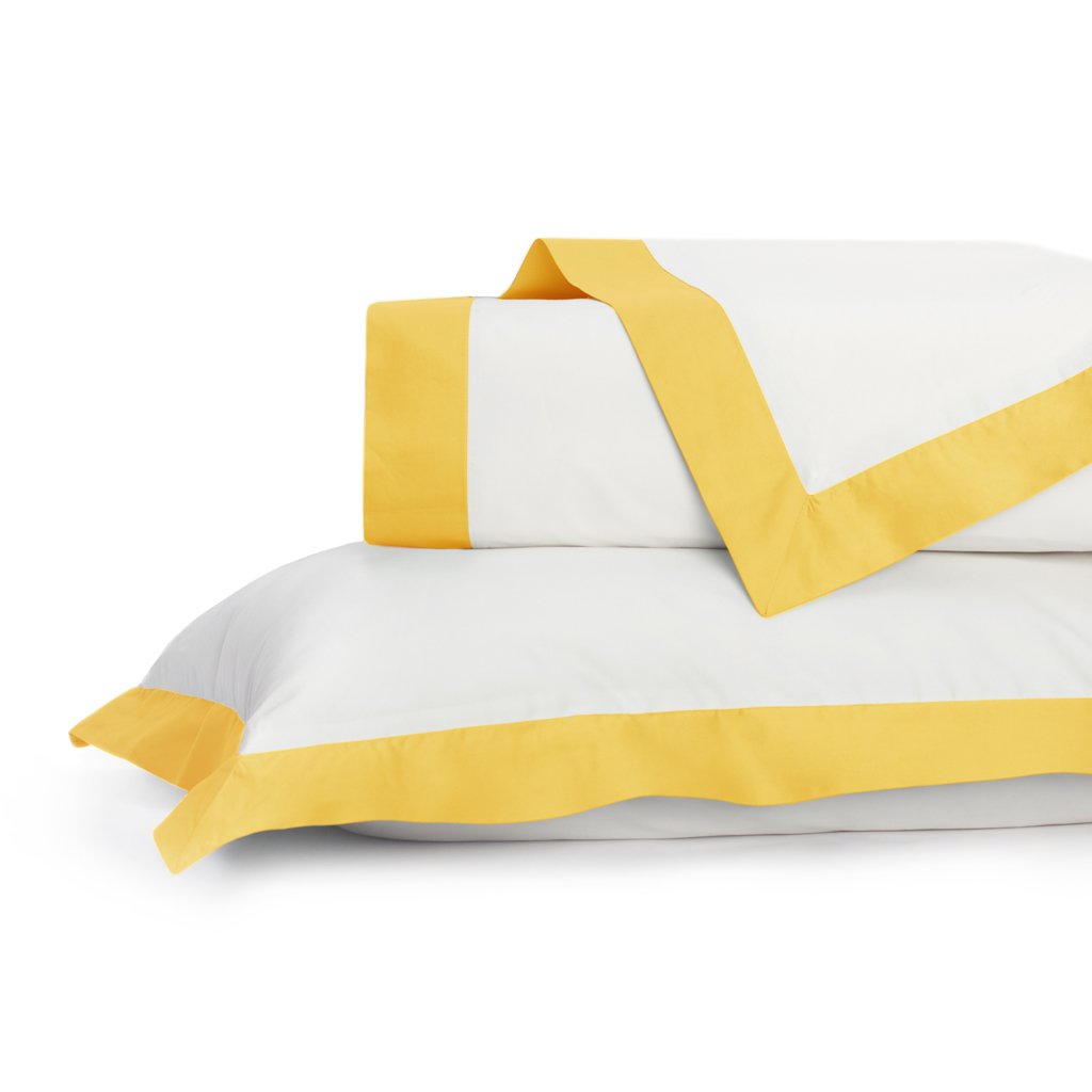 The luxury is in the details, especially when inspired by the classic bedding found in the finest luxury hotels around the world. Woven from luxurious 400-thread count, single ply, 100% cotton with tailored yellow borders, this irresistibly soft and beautiful yellow and white bedding lends elegance to any room.
